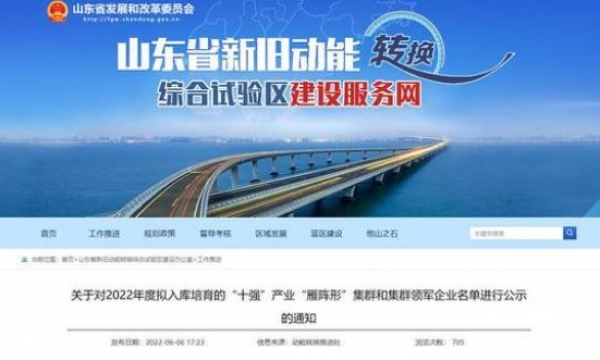 38个产业集群、63家企业入选2022年山东省“十强”产业“雁阵形”集群库、集群领军企业库